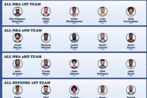 一阵:亚历山大、约基奇、文班亚马、东契奇、坎宁安